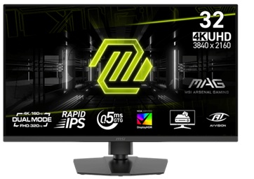 | 9S6-3DD89T-012 | MSI MAG 322URDF E16 31.5" 16:9 UHD(3840x2160) Rapid IPS Flat,DisplayHDR 400, 0,5ms(GTG), 1000:1,100M:1,400nits,2xHDMI,1xDP,USB-Ax2,USB-B,Tilt,Swivel,Height,Pivot,VESA, 160HzUHD/320HzFHD, Black, 1y war |