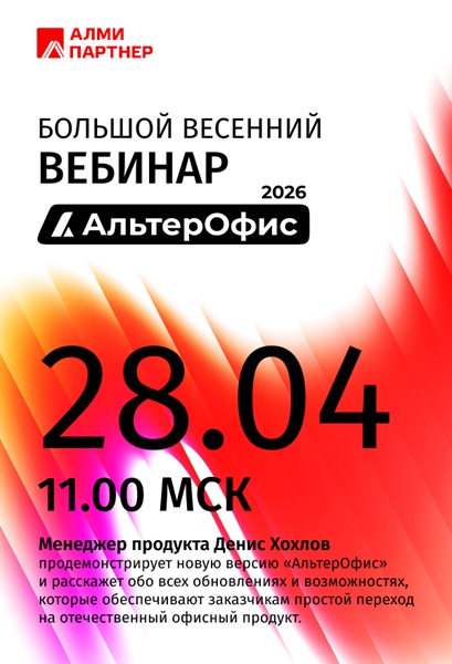 «АЛМИ Партнер» приглашает принять участие в большом весеннем вебинаре.