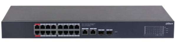 Порты: 16 RJ45 10/100/1000Мбит/с (PoE/PoE+/Hi-PoE/IEEE 802.3bt), 2 RJ45 10/100/1000Мбит/с (uplink), 2 SFP 1000Мбит/с (uplink); web-управление, функция облачного управления, мощность PoE: порт 1~2 до 90Вт, порты 3~16 до 30Вт, суммарно до 240Вт; PoE watchdog, передача до 250м; питание: 100~240В(AC)