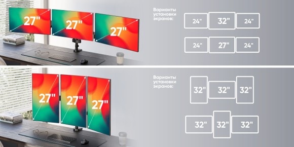 Создаёте комнату видеонаблюдения, рабочее место монтажёра или просто собираете продвинутое игровое место из трёх мониторов? ONKRON G280 – идеальное решение для вас! С ним вы легко и комфортно разместите мониторы даже на маленьком столе.