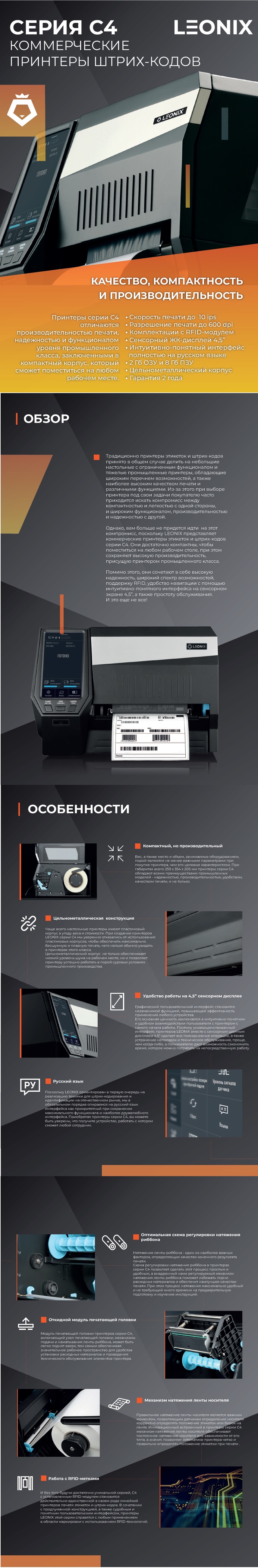 | PLNX04R.TT40203 | LEONIX С42R (DT/TT), UHF RFID, 203 dpi, скорость печати 10 ips, 300м риббон, USB/USB Host/LAN/RS232 |