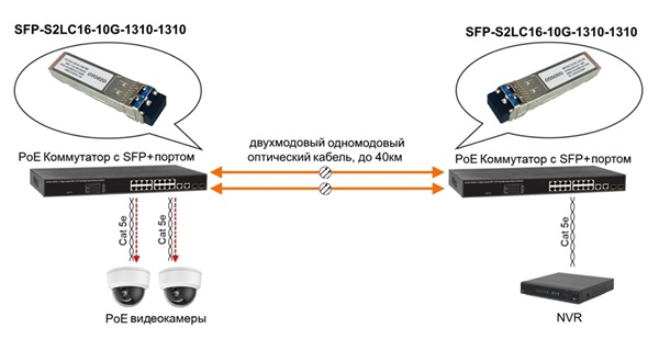 Схема применения SFP-S2LC16-10G-1310-1310