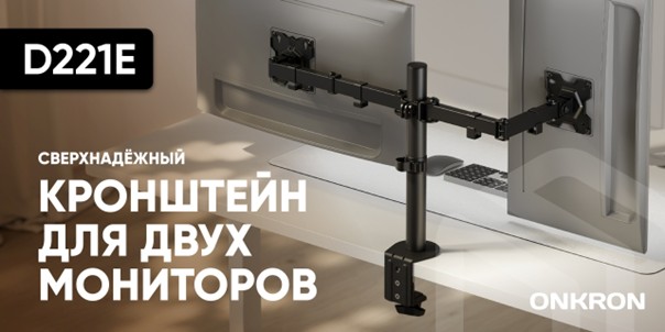 Такой кронштейн отлично подходит для тех, кому важно сохранить больше рабочего пространство на столе, не лишая себя удобства двух мониторов.