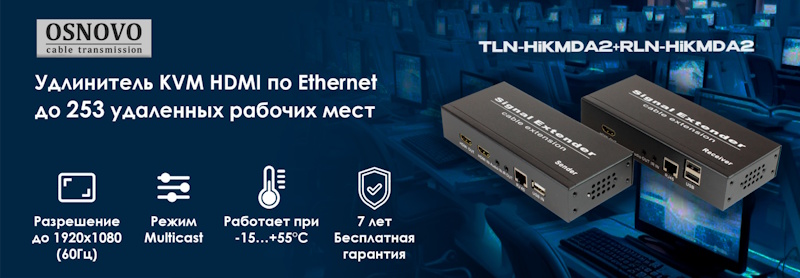 Представляем вам новый комплект устройств TLN-HiKMDA2+RLN-HiKMDA2 и дополнительные приемники RLN-HiKMDA2 к нему, предназначенные для передачи сигнала HDMI, аудиосигнала, USB для подключения клавиатуры и мыши, RS232 и ИК управления в локальной сети.
