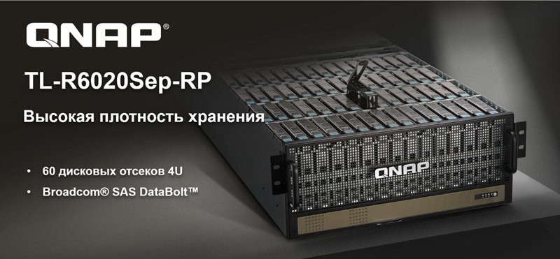 Компания QNAP Systems выпустила модуль расширения TL-R6020Sep-RP в корпусе высотой 4U с 60 отсеками для дисков SAS/SATA. Модуль TL-R6020Sep-RP, оптимизированный для хранения данных объемом в петабайт, позволяет предприятиям эффективно масштабировать инфраструктуру хранения для приложений "холодной" обработки данных, таких как видеонаблюдение, анализ Big Data и мультимедийное архивирование.
