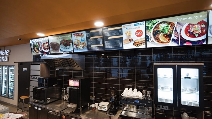 - Внедрение меню-бордов и информационных экранов на АЗС разного формата;