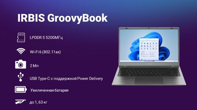 IRBIS GroovyBook – коммерческий ноутбук с высокой производительностью по оптимальной цене. Это многофункциональная модель, которая идеально подойдет для компаний, стремящихся повысить эффективность своих бизнес-процессов при минимальных затратах.